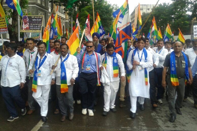 ‘धर्मराज्य पक्ष’ आणि ‘बहुजन रिपब्लिकन सोशालिस्ट पार्टी’ यांच्या संयुक्त विद्यमाने बुधवार, दि. २७ जुलै रोजी पार पडलेला जिजामाता उद्यान (भायखळा) ते आझाद मैदानापर्यंतचा “संविधान मोर्चा” प्रचंड यशस्वी ठरला. जनसामान्यांना भेडसावणा-या प्रश्नांचा राज्य आणि केंद्र सरकारला जाब विचारणा-या या प्रचंड मोर्चाचे नेतृत्व ‘धर्मराज्य पक्षा’चे अध्यक्ष राजन राजे, ‘बहुजन रिपब्लिकन सोशालिस्ट पार्टी’चे अध्यक्ष डॉ. सुरेश माने आणि ‘शिवराज्य पक्षा’चे अध्यक्ष ब्रिगेडियर सुधीर सावंत यांनी केले.